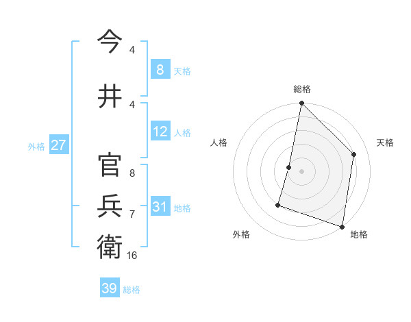 今井 官兵衛さんの総格は39画の5点