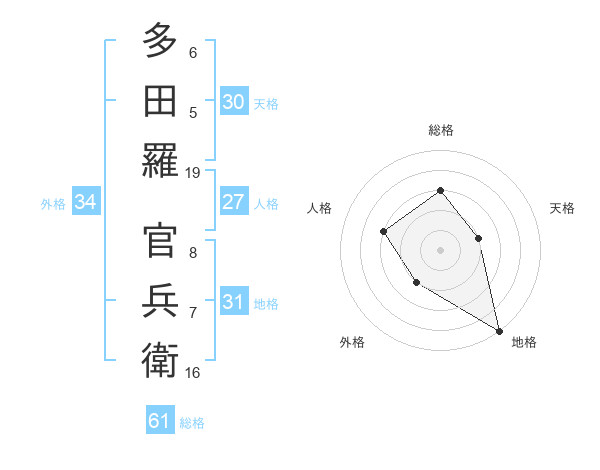多田羅 官兵衛さんを姓名の画数から五運を鑑定