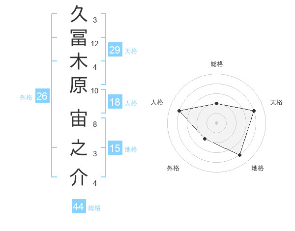 久冨木原 宙之介さんの天格は29画の4点!