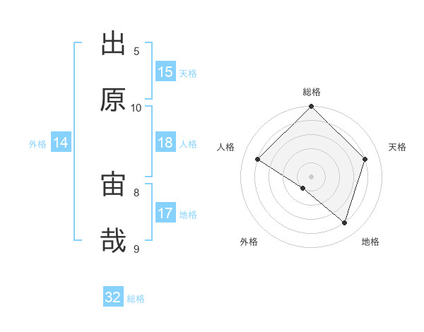 出原 宙哉さんの総格は32画の5点!
