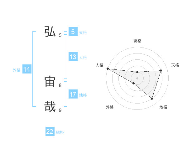 弘 宙哉さんを姓名の画数から五運を鑑定