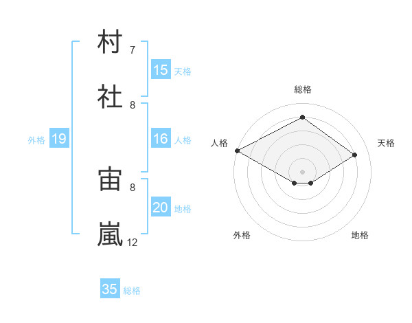 村社 宙嵐さんの総格は35画の4点!