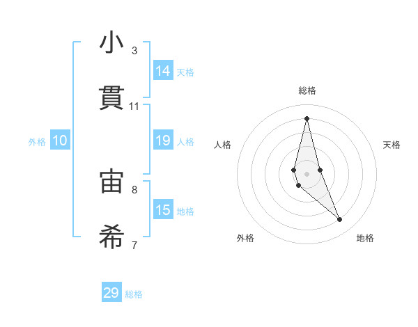 小貫 宙希さんの総格は29画の4点!