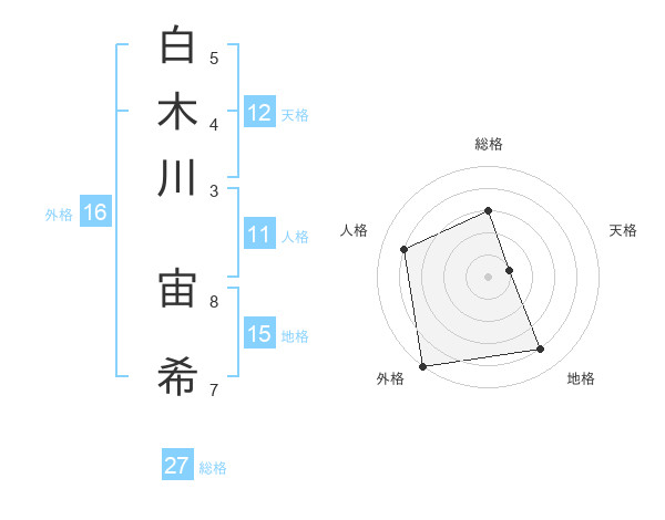白木川 宙希さんを姓名の画数から五運を鑑定