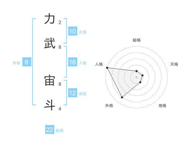 力武 宙斗さんを姓名の画数から五運を鑑定