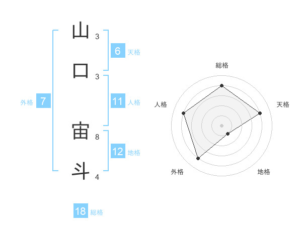 山口 宙斗さんの天格は6画の4点!