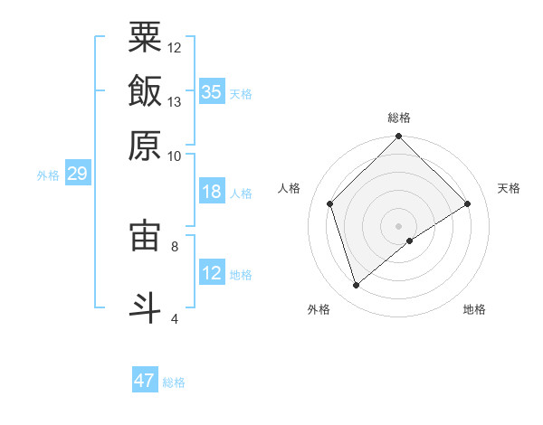 粟飯原 宙斗さんを姓名の画数から五運を鑑定