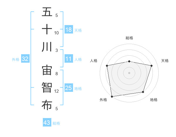 五十川 宙智布さんを姓名の画数から五運を鑑定