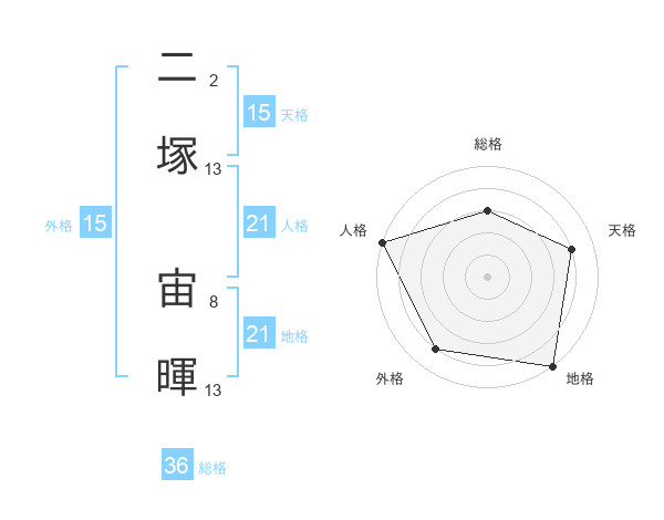 二塚 宙暉さんを姓名の画数から五運を鑑定