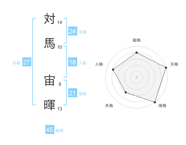 対馬 宙暉さんの総格は45画の4点