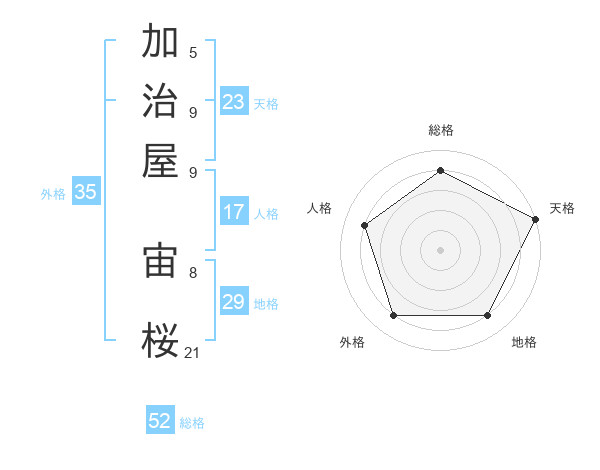加治屋 宙桜さんを姓名の画数から五運を鑑定