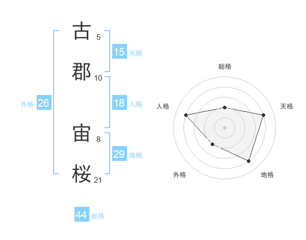 古郡 宙桜さんを姓名の画数から五運を鑑定