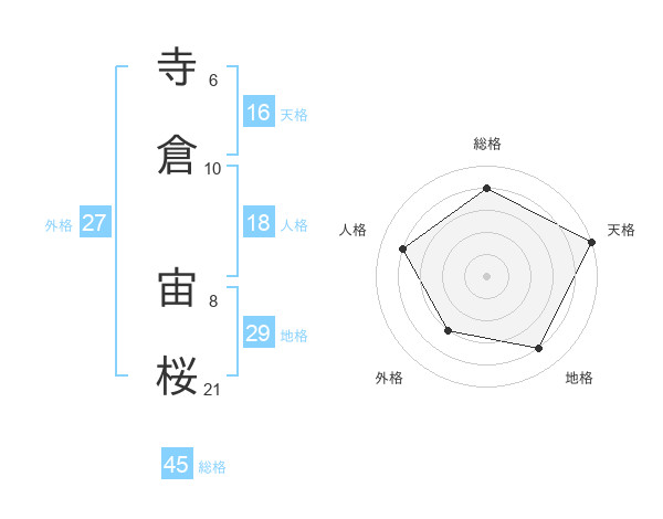 寺倉 宙桜さんの総格は45画の4点!