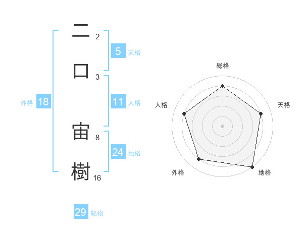 二口 宙樹さんを姓名の画数から五運を鑑定