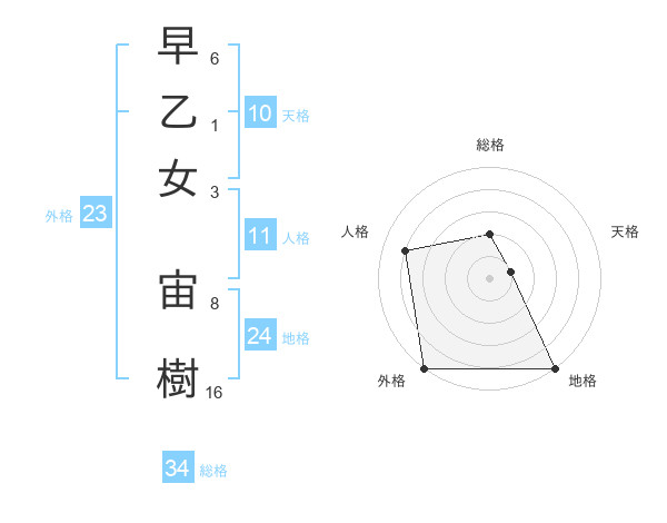 早乙女 宙樹さんを姓名の画数から五運を鑑定