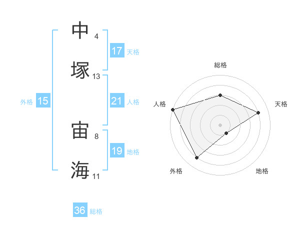 中塚 宙海さんを姓名の画数から五運を鑑定