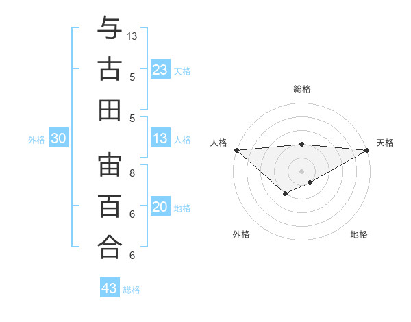 与古田 宙百合さんを姓名の画数から五運を鑑定