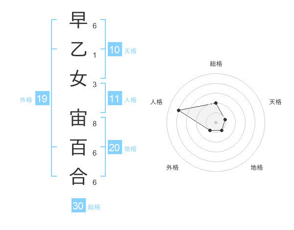 早乙女 宙百合さんを姓名の画数から五運を鑑定