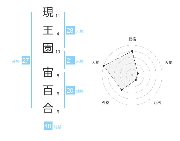 現王園 宙百合さんの総格は48画の4点!