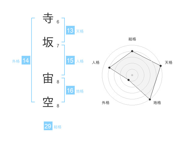 寺坂 宙空さんの総格は29画の4点!