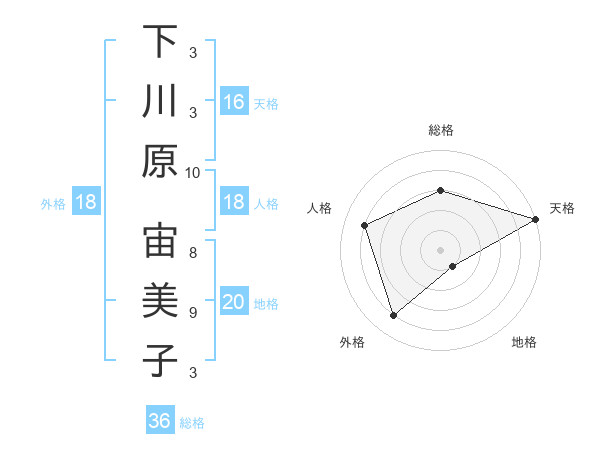 下川原 宙美子さんを姓名の画数から五運を鑑定