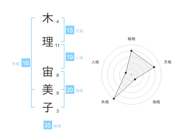 木理 宙美子さんの総格は35画の4点!