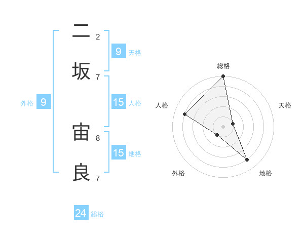 二坂 宙良さんの総格は24画の5点!
