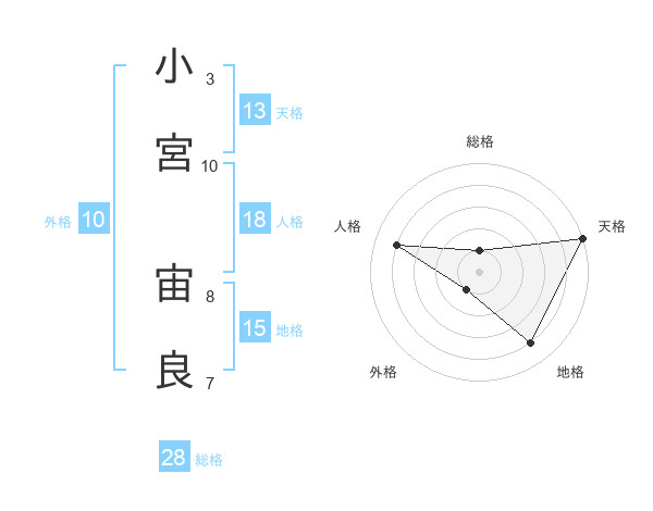 小宮 宙良さんを姓名の画数から五運を鑑定