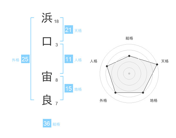 浜口 宙良さんの天格は21画の5点!