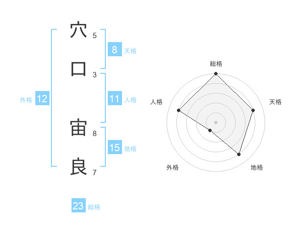 穴口 宙良さんの総格は23画の5点!