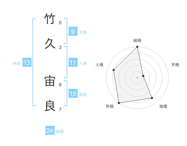 竹久 宙良さんの総格は24画の5点!