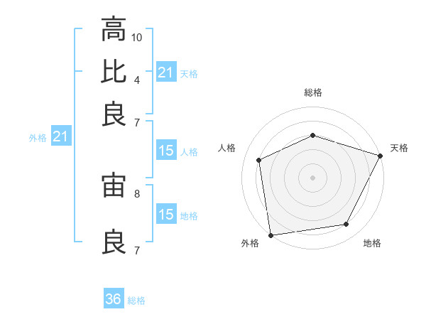 高比良 宙良さんを姓名の画数から五運を鑑定