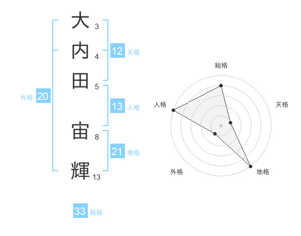 大内田 宙輝さんの総格は33画の4点!