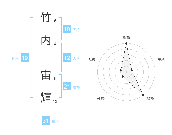 竹内 宙輝さんを姓名の画数から五運を鑑定