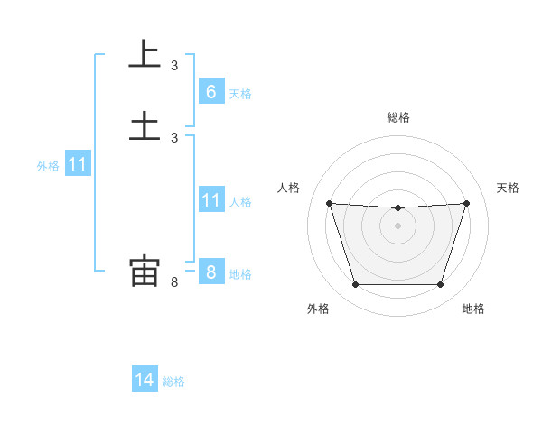 上土 宙さんの外格は11画の4点!