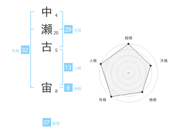 中瀬古 宙さんの外格は32画の5点!