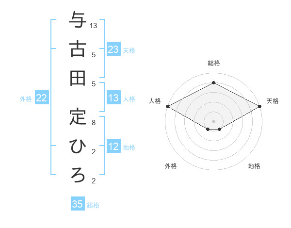 与古田 定ひろさんを姓名の画数から五運を鑑定