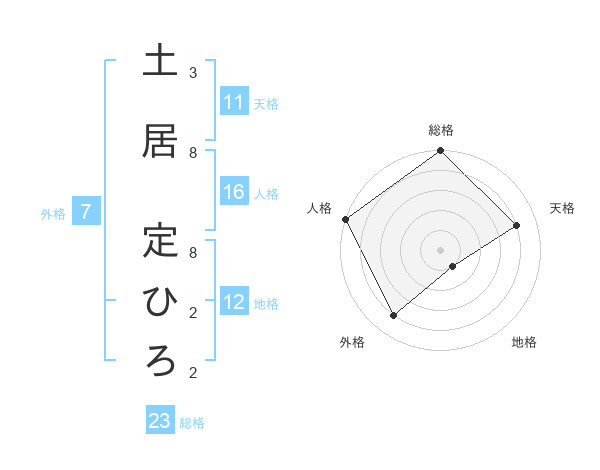 土居 定ひろさんを姓名の画数から五運を鑑定