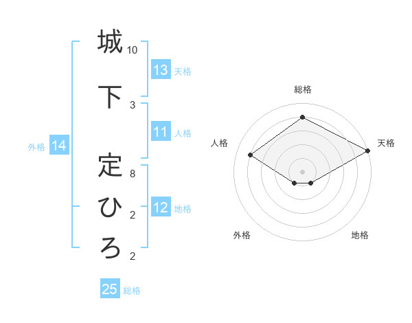 城下 定ひろさんの総格は25画の4点!