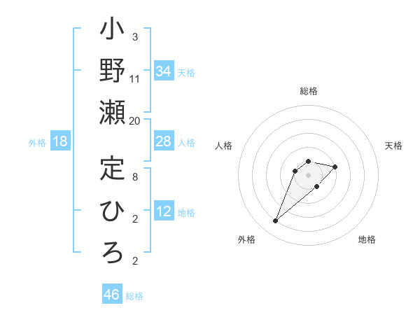 小野瀬 定ひろさんを姓名の画数から五運を鑑定