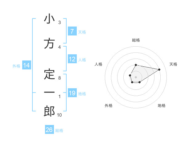 小方 定一郎さんを姓名の画数から五運を鑑定