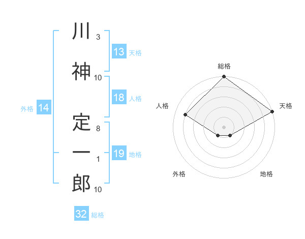 川神 定一郎さんを姓名の画数から五運を鑑定