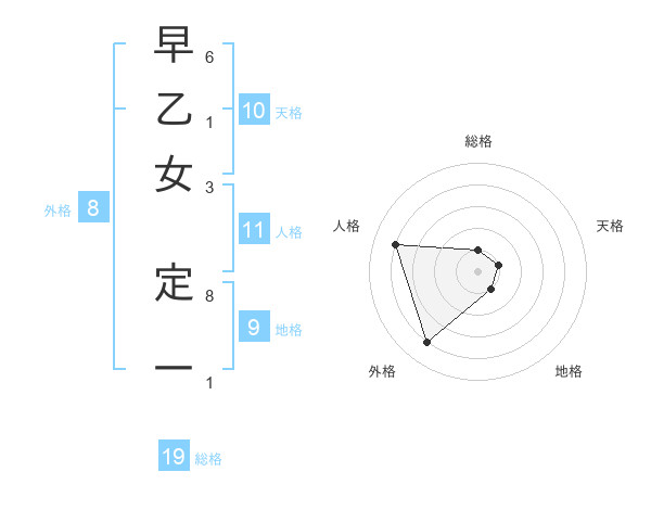 早乙女 定一さんを姓名の画数から五運を鑑定