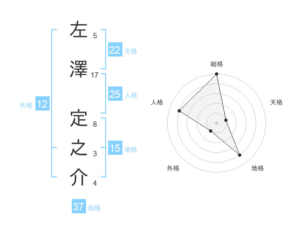 左澤 定之介さんを姓名の画数から五運を鑑定