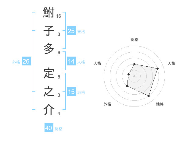 鮒子多 定之介さんの総格は40画の2点!