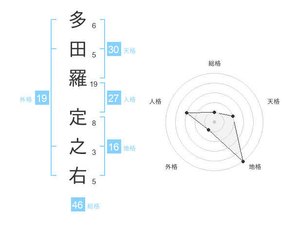 多田羅 定之右さんの総格は46画の1点!