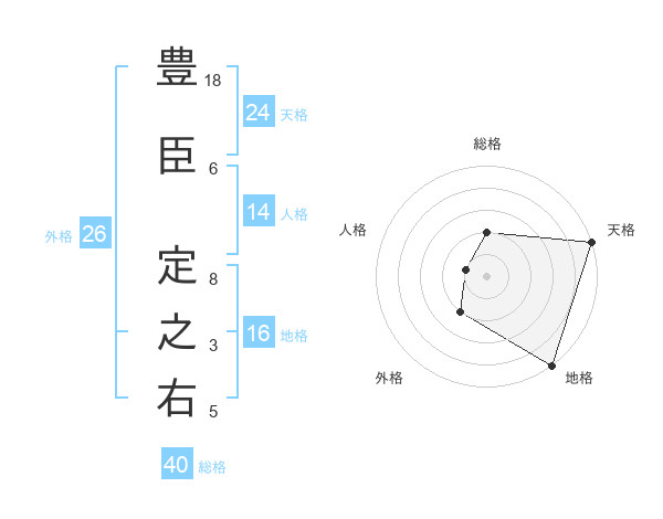 豊臣 定之右さんを姓名の画数から五運を鑑定