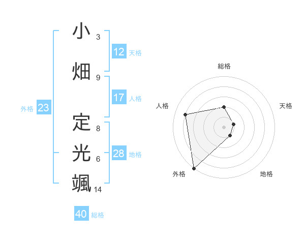 小畑 定光颯さんの天格は12画の1点!