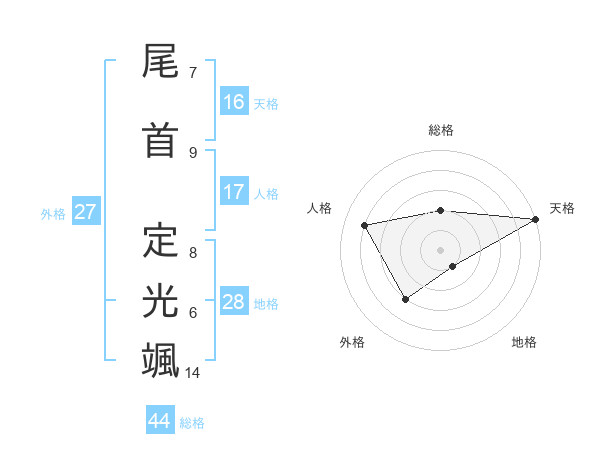 尾首 定光颯さんの天格は16画の5点!