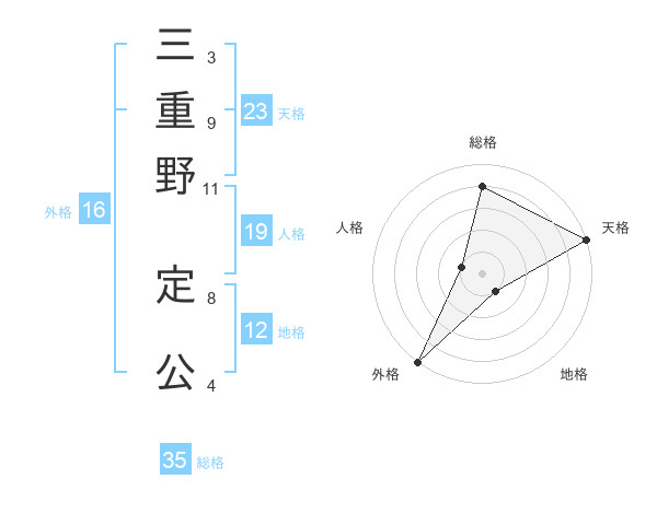 三重野 定公さんの総格は35画の4点!